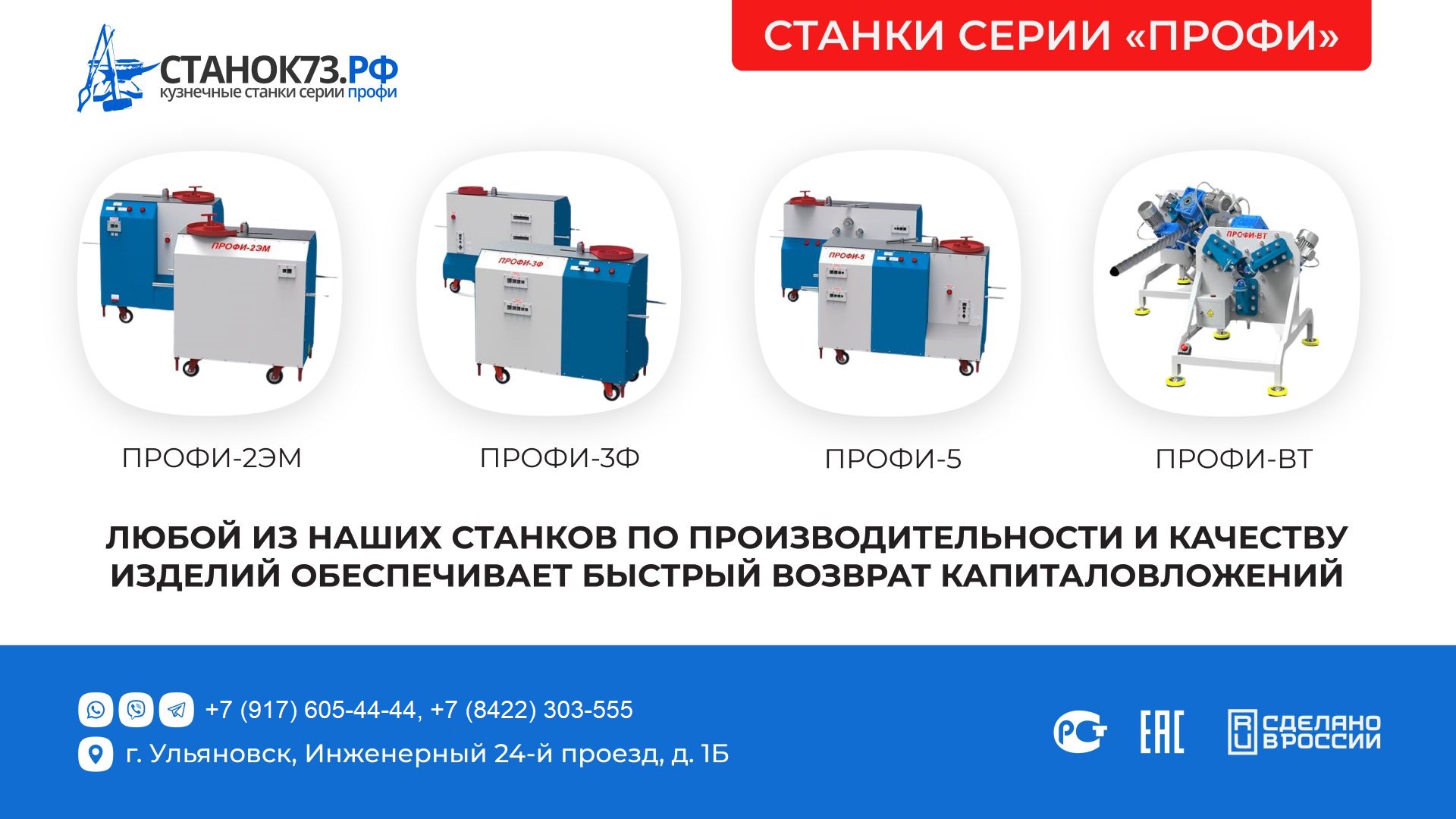 ООО «Компания ПРОФИ» серийно производит и предлагает купить кузнечные станки серии «ПРОФИ», различных моделей, с разным набором функций, по выгодным ценам. Оборудование